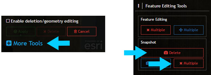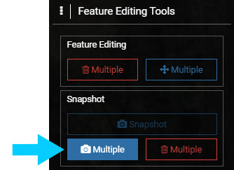 To delete multiple Snapshots at one time use the same process above, but select the 'Multiple' button in the 'Feature Editing Tools' menu.
