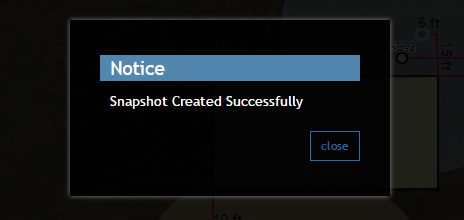 A notification will appear stating that the 'Snapshot Created Successfully', select 'Close'. You have now created your first 'Snapshot' of a feature, in this instance the Building.